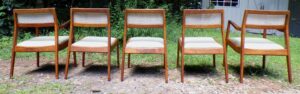 Vintage Mid Century Set of 5 Jens Risom Walnut and Caned Playboy Dining Chairs