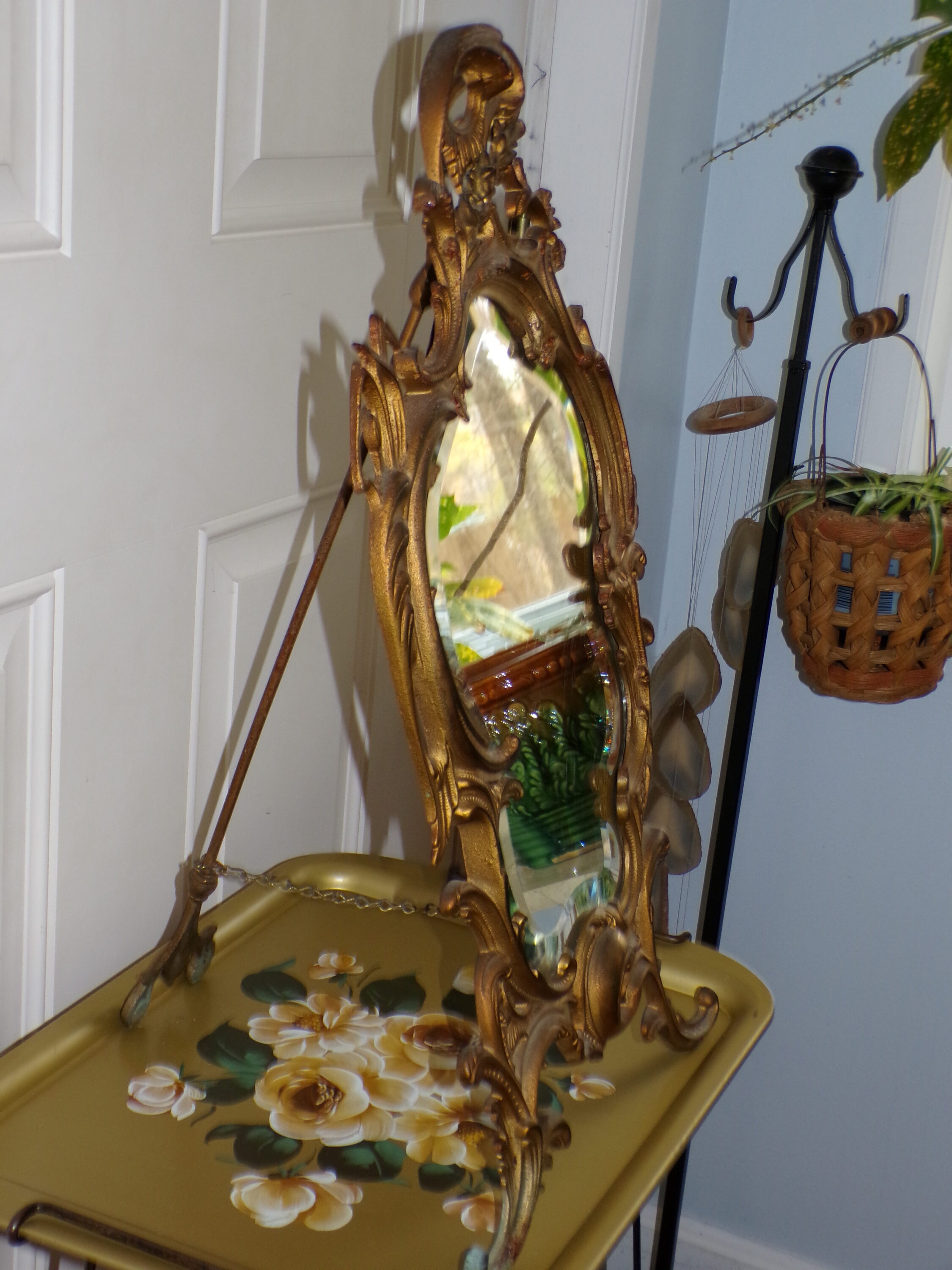 Antique NB&IW Gold Gilt Rococo Brass Table Mirror Free Standing Vanity Mirror