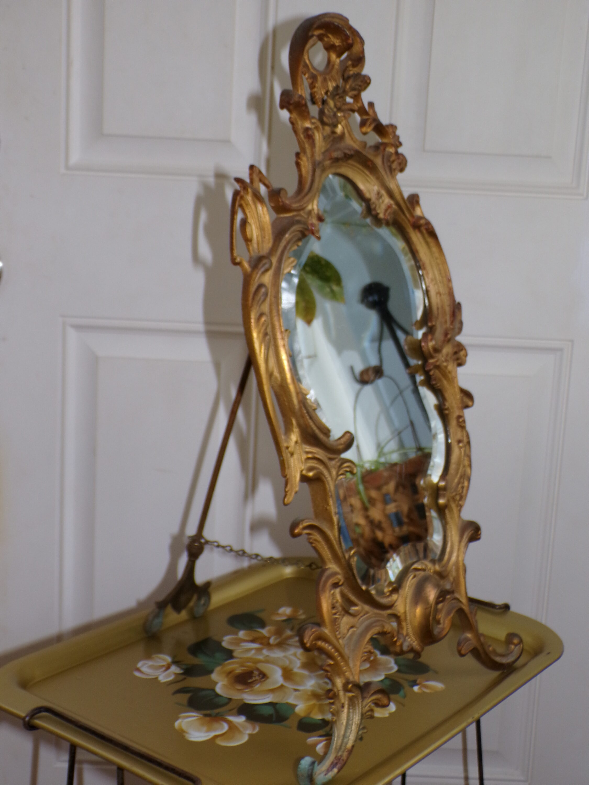 Antique NB&IW Gold Gilt Rococo Brass Table Mirror Free Standing Vanity Mirror