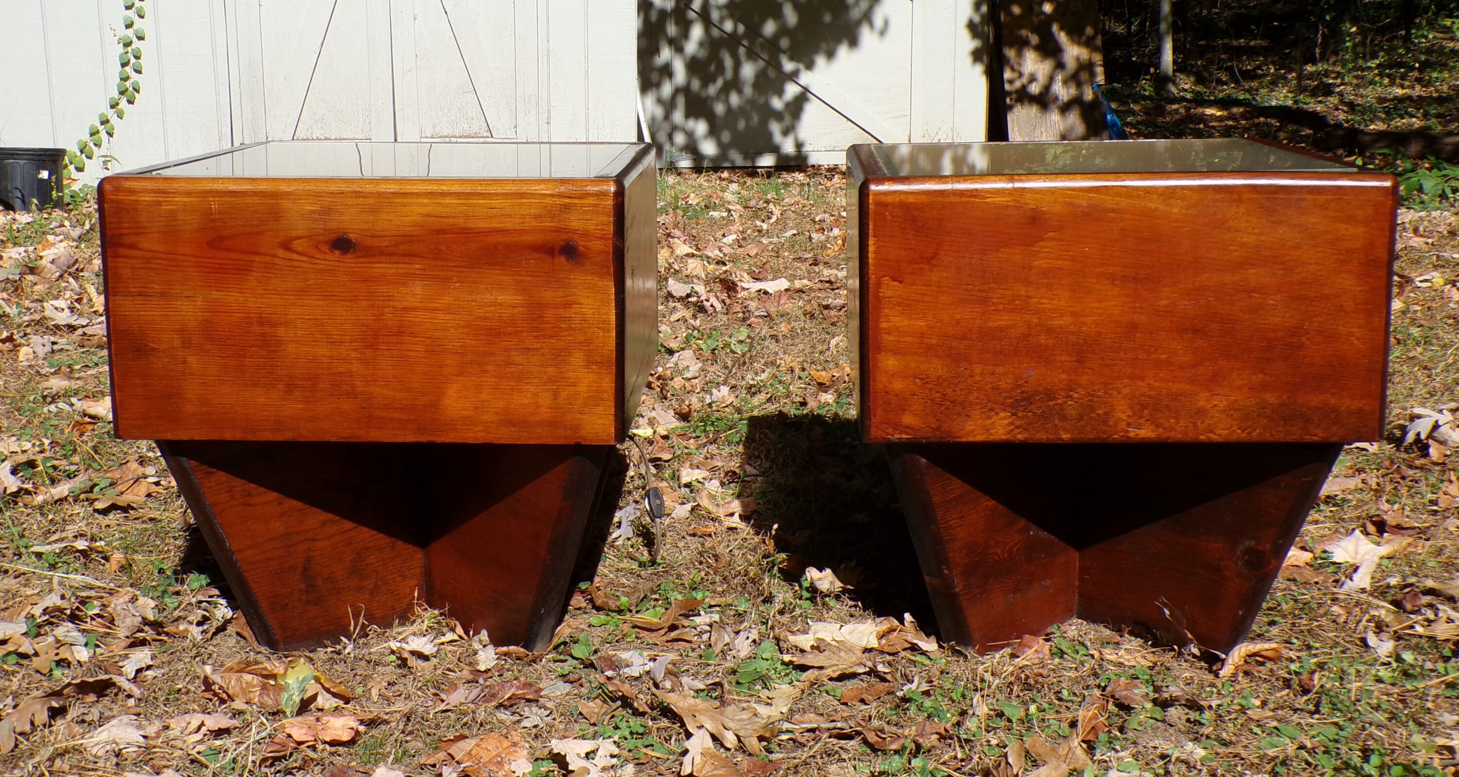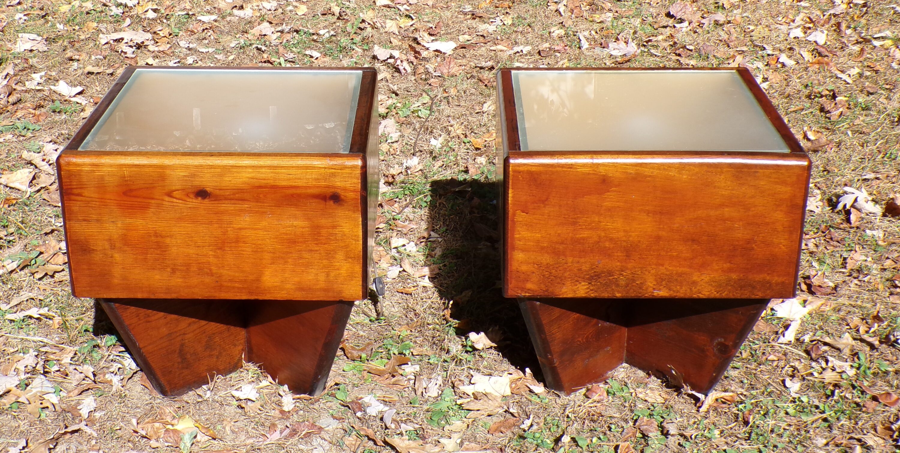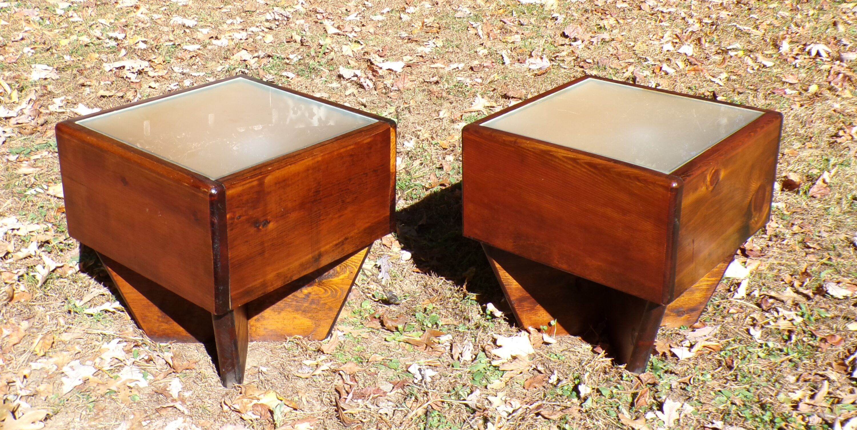 Vintage Mid Century Modern Pair Handcrafted Light Up End Tables Cocktail Tables
