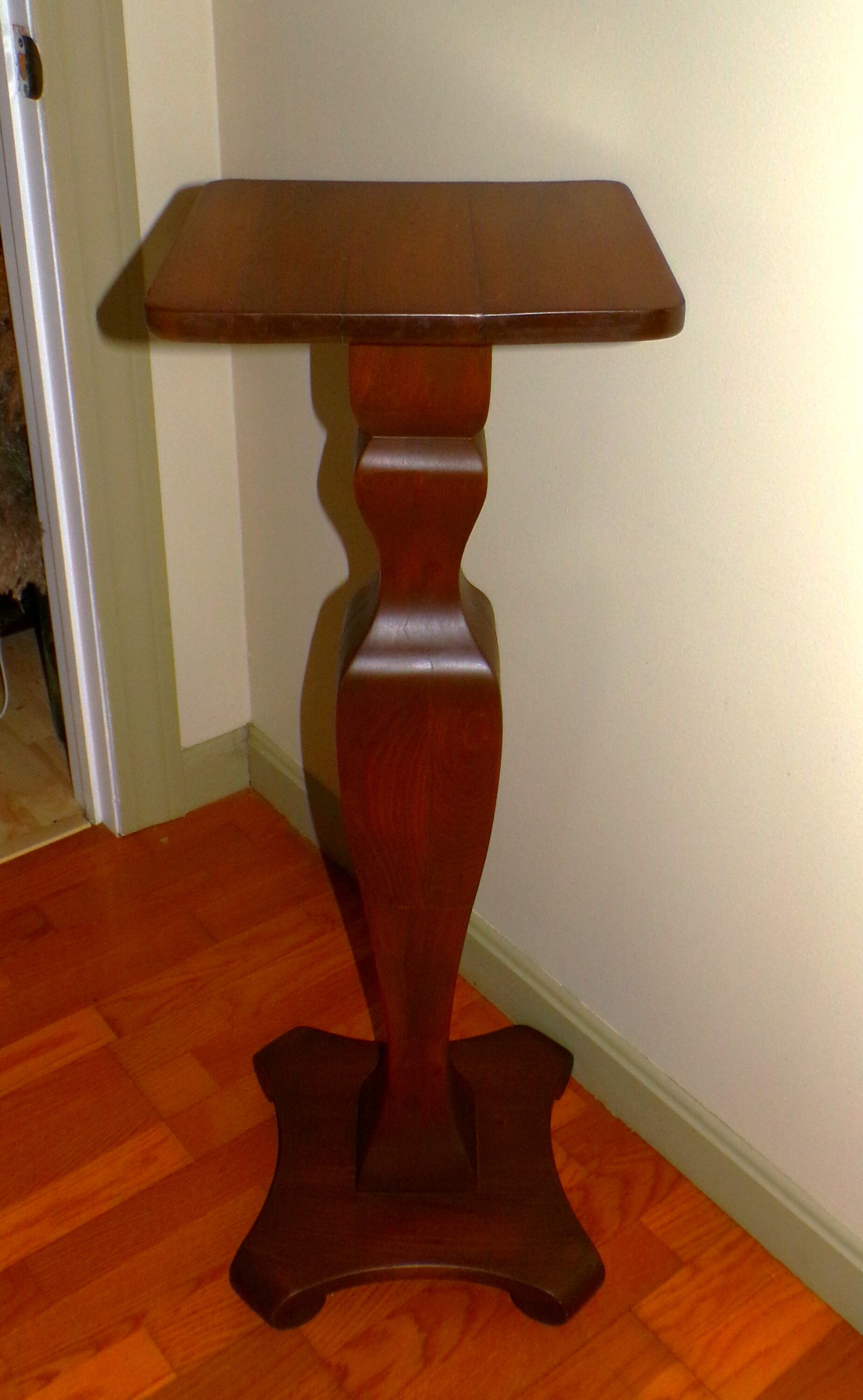 Vintage Solid Wood Pedestal Plant Fern Bust Stand features long vasiform column resting on sculptural base with curved feet.